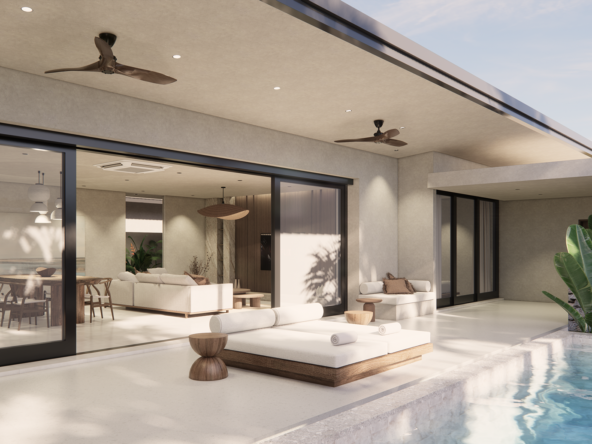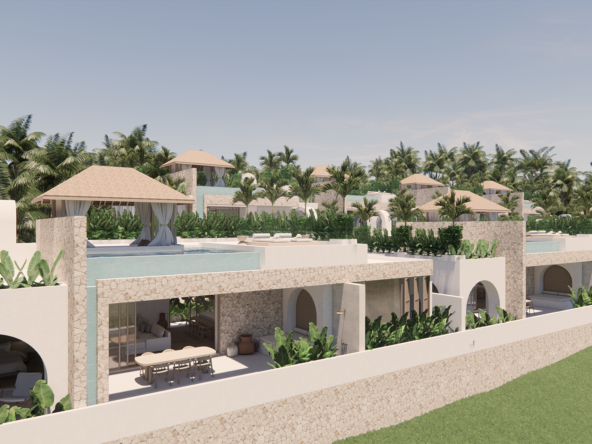Each two-bedroom villa, priced at USD 294,000, is designed to provide a perfect retreat, featuring a contemporary open-plan living area, a modern kitchen, and a private pool surrounded by lush landscaping. Lot sizes range from 268 to 298m² with an indoor area size of 165,5 m². Currently, two of the villas are under construction and are 80% complete. These are ready for viewing, offering potential buyers a glimpse into the luxurious lifestyle that awaits.
