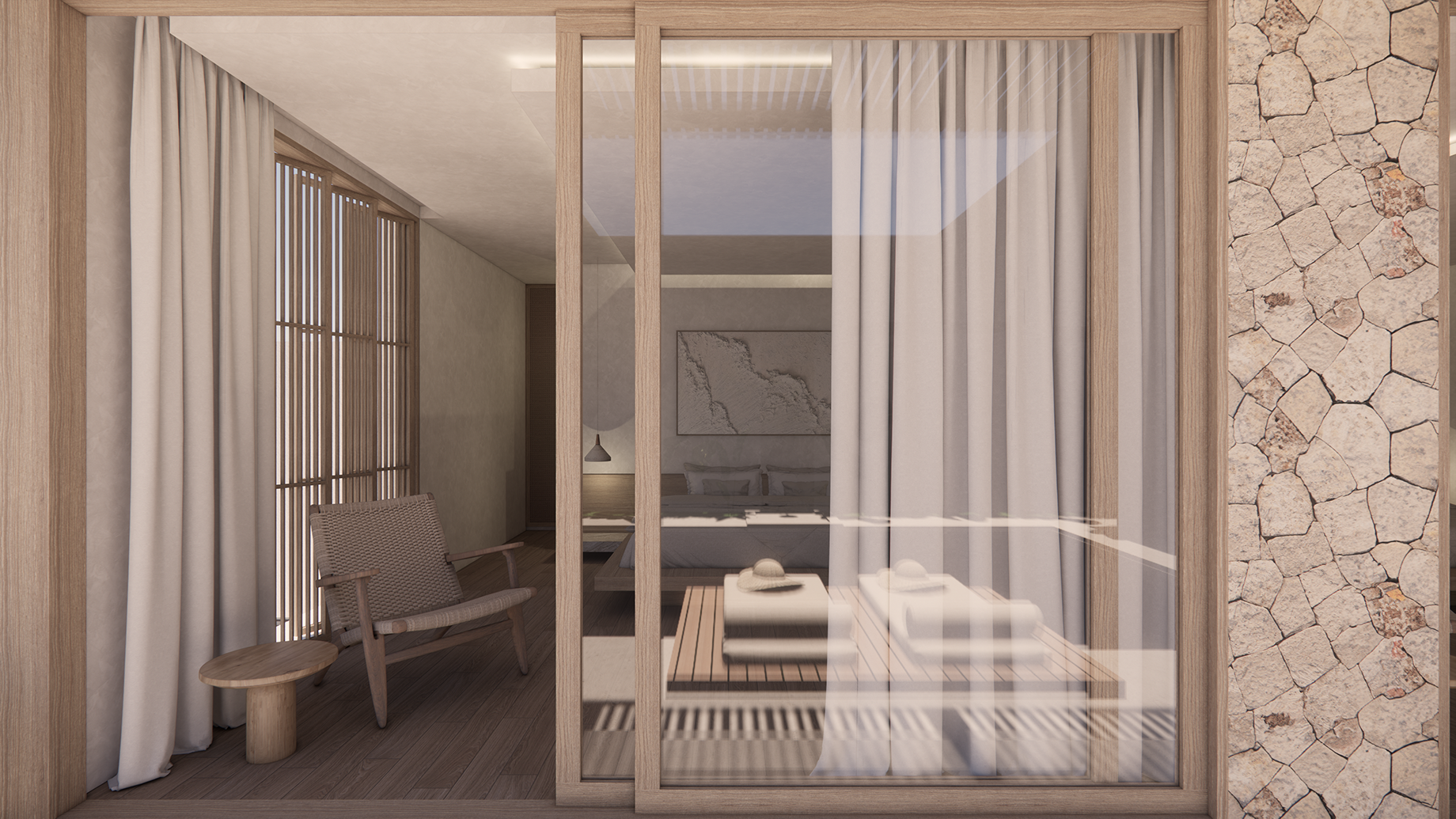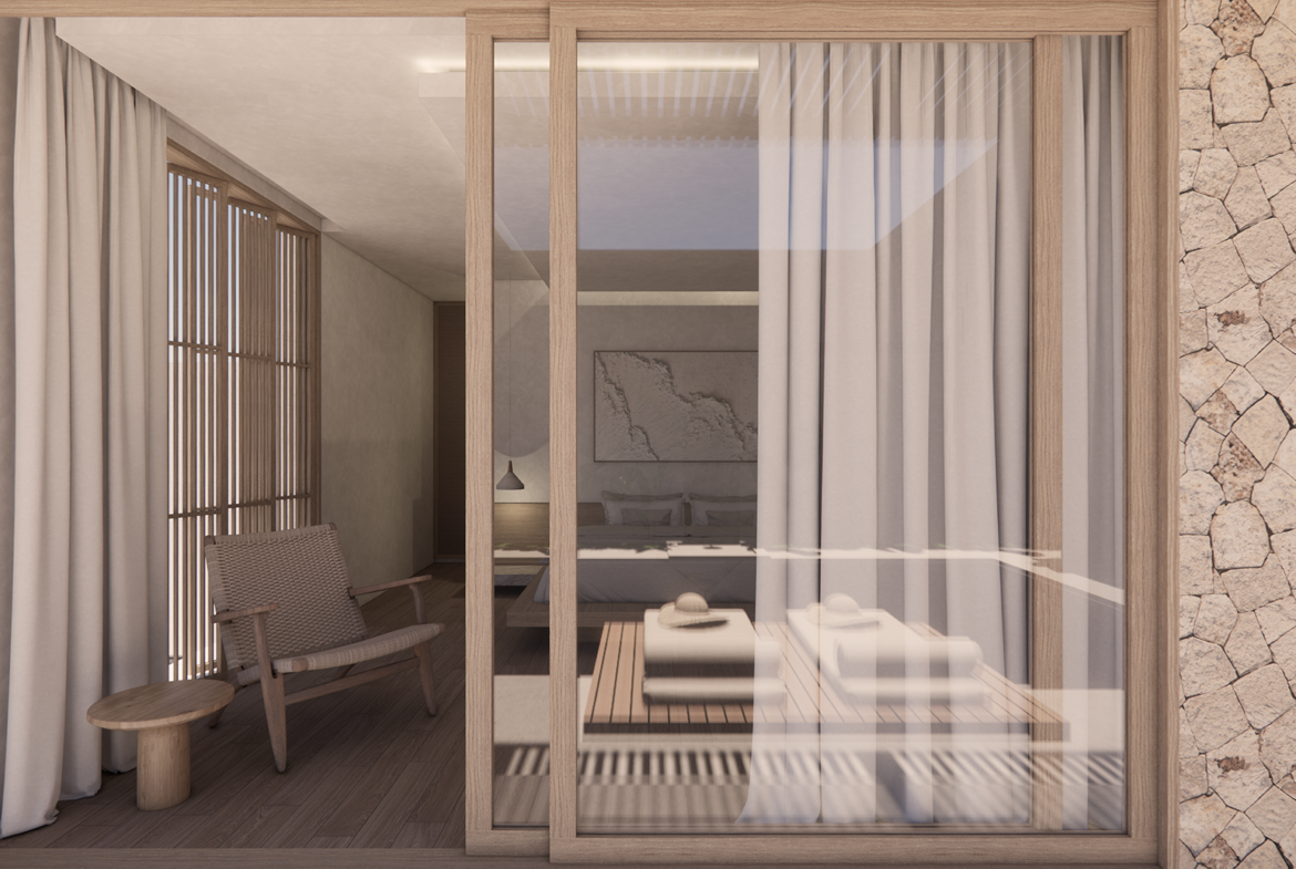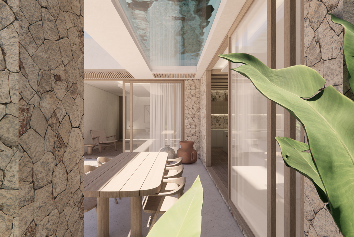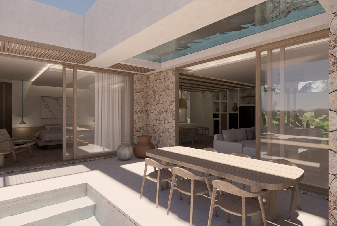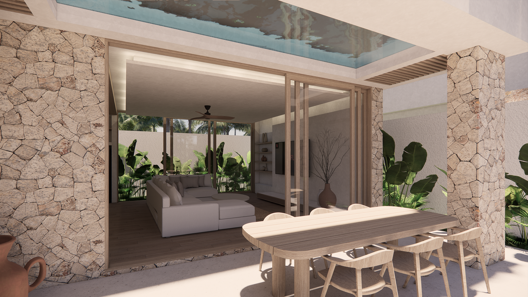 • Private double pools with mesmerizing glass bottoms and elegant waterfalls.