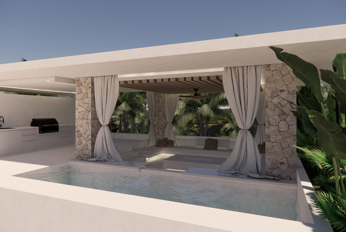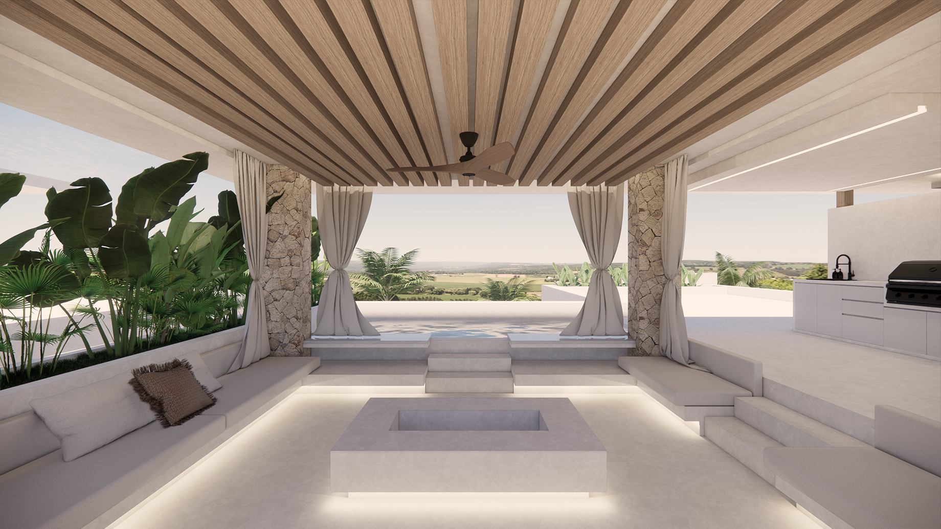 • A rooftop with a sunken sofa, ideal for unwinding or entertaining under the stars.
